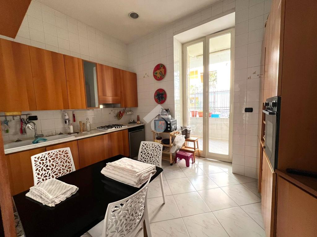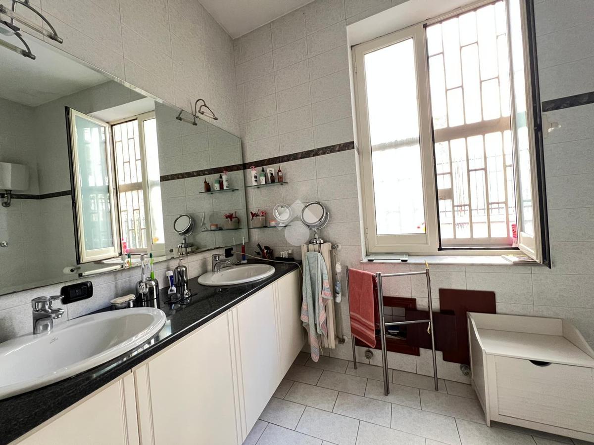 Il salone, dotato di due punti luce, è perfetto per accogliere momenti di relax e convivialità, inondato di luce naturale grazie alla sua quadrupla esposizione. La cucina, con un balcone terrazzato, offre uno spazio esterno privato, ideale per godere di una colazione all'aperto o di un angolo verde cittadino.